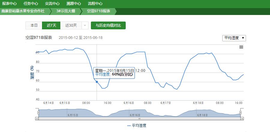 濕度對葡萄種植的影響也非常大,比如,葡萄園的空氣濕度連續(xù)一周都超過80%,就需要注意葡萄是否會發(fā)生灰霉病等疾病。而天潤智力智能農(nóng)業(yè)監(jiān)控系統(tǒng)能夠實時監(jiān)測空氣濕度,如果監(jiān)測到葡萄園連續(xù)一周的空氣濕度超過80%,就會給葡萄管理員發(fā)送預警,提醒他們注意預防灰霉病等疾病。