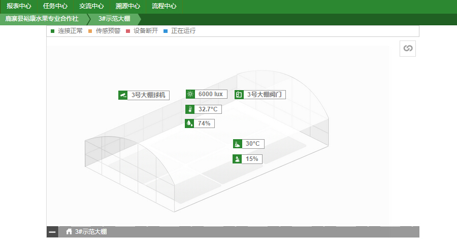 天潤智力智慧農(nóng)業(yè)監(jiān)控系統(tǒng)通過物聯(lián)網(wǎng)設備的聯(lián)動,實時監(jiān)測大棚的空氣溫度,如果溫度低了,自控系統(tǒng)將自動給其加溫;如果溫度高了,降溫系統(tǒng)就會自動開啟。