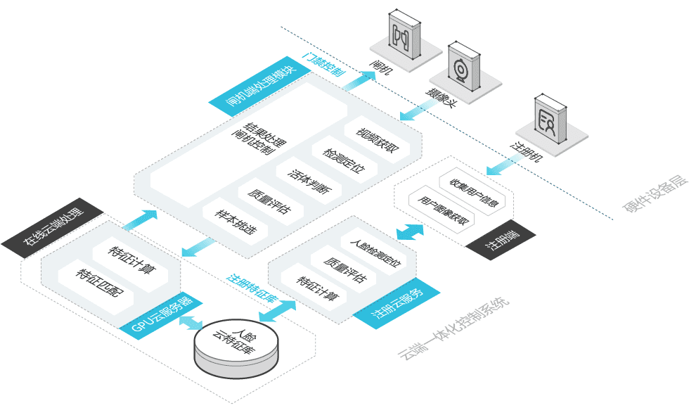 使用智能AI技術及云服務,進行快速精準身份識別,并通過活體檢測技術拒絕照片/視頻回放等虛假攻擊
