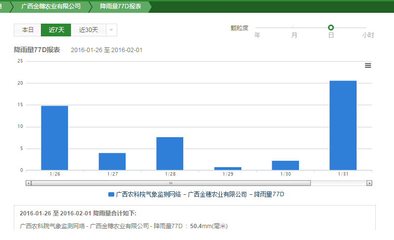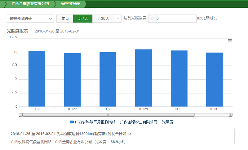 利用空氣溫度傳感器、空氣濕度傳感器、光照度、降雨量等傳感設(shè)備實(shí)時監(jiān)測香蕉種植的環(huán)境。實(shí)時監(jiān)測的環(huán)境情況數(shù)據(jù)每隔10秒鐘就上傳到“天潤智力智慧農(nóng)業(yè)云平臺”,研究所人員只要登錄手機(jī)APP或者在電腦上,就可以遠(yuǎn)程隨時隨地查看香蕉種植基地的各項(xiàng)關(guān)鍵數(shù)據(jù)。所采集的數(shù)據(jù)實(shí)時上傳到天潤智力智慧農(nóng)業(yè)云平臺,并快速進(jìn)行統(tǒng)計(jì)分析,解決了科研人員對數(shù)據(jù)的采集分析需求,并確保了數(shù)據(jù)采集的精準(zhǔn)、快速、全面。