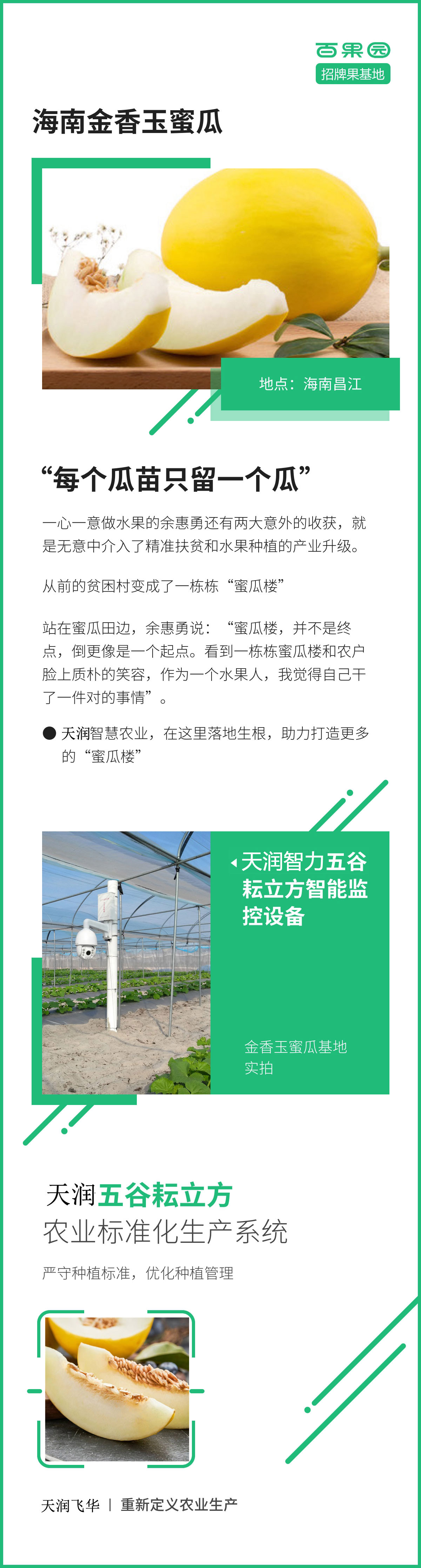 后來智慧果業(yè)生產(chǎn)的全資子公司海南王品的基地建到了這里,蜜瓜變成了致富的種子,全村年人均收入從過去的1500余元, 到目前的8000元以上,蜜瓜種植戶的年人均收入1.5萬元左右。五大村蜜瓜的種植面積從最初的20畝,發(fā)展到數(shù)千畝,而隨著種植面積的日益增加,產(chǎn)業(yè)變革也勢在必行。