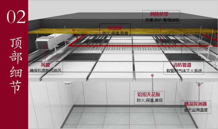 (吊頂上線纜要有管道作保護(hù)套,所有吊頂以上天棚、墻面要有抗靜電設(shè)計(jì),而且還需要做豹紋凡塵處理吊頂天棚多采用微孔金屬板。)