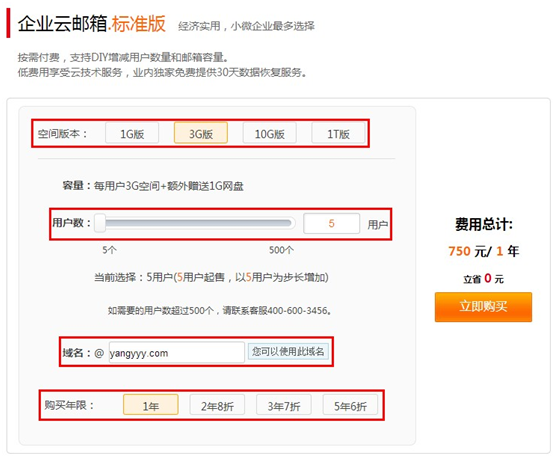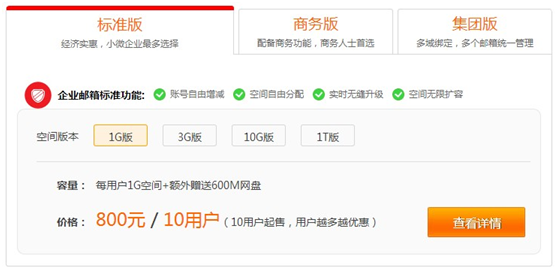 點擊“查看詳情”進入到云郵箱標準版購買頁面。如下圖: