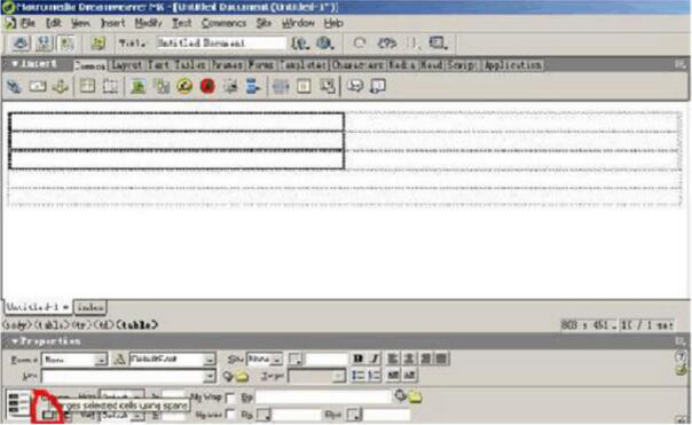 插入表格的時個要注意對比原h(huán)tm文件中的內(nèi)容,思考為什么這樣做;接下來在第二行中插入一個二行二列的表格,按上面的方法合并左邊的格子,并在右邊格子的第一行插入一個一行五列的表格如圖示: