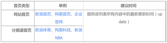 比如網(wǎng)站的首頁或者是分頻道首頁,就像一些新聞門戶網(wǎng)站,這類型的特征是內(nèi)容較多,鏈接也較多,內(nèi)容更新較快,只需要提供最新的更新時(shí)間就行。(如下圖示)
