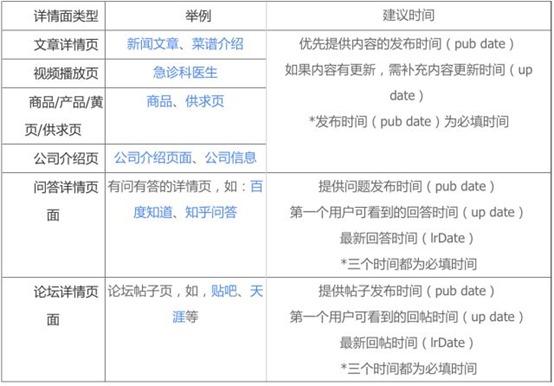 詳情頁主要是內(nèi)容頁面,包括文章詳情頁,視頻播放頁等,這類頁面在發(fā)布后,大部分更新較少,而用戶值關(guān)注發(fā)布時(shí)間。當(dāng)然如果是問答,論壇等具有交互的詳情頁比較特殊,就需要提供更多的內(nèi)容。