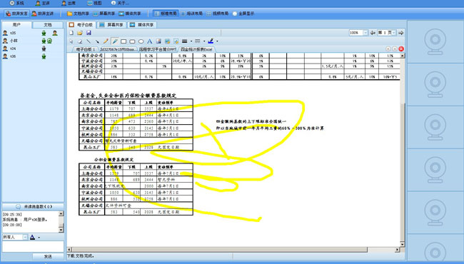 9、電子白板,使用第三方中間件(msoffice),可以打開本地文件或服務(wù)器上的文件進行閱覽,在會議期間參會者可以選擇廣播式和非廣播式,廣播式需要鎖定其他參會者的顯示器,其他參會人員可以看到發(fā)廣播人進行會議批注。