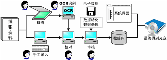 將古籍的全文以鍵盤輸入計算機,使之?dāng)?shù)字化。經(jīng)過標(biāo)引及系統(tǒng)處理,凡錄入的文字都可以檢索、統(tǒng)計,貯存空間小,檢索速度快。同時,為了保證文字的準(zhǔn)確率,我們開發(fā)了古籍自動?毕到y(tǒng),對錄入后的文本進行自動校對,并采用人工輔助校對的方式,經(jīng)過3~5個校次,文字錯誤率控制在萬分之一以內(nèi),達到出版水平。