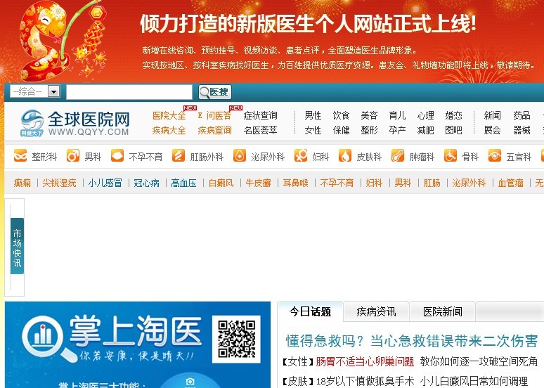 全球醫(yī)院網(wǎng)(www.QQYY.com)隸屬網(wǎng)健天下科技管理有限公司,經(jīng)過兩年來的前期籌備工作,全球醫(yī)院網(wǎng)(中文版)于2008年1月8日正式開通。 全球醫(yī)院網(wǎng)(www.QQYY.com)是根據(jù)世界衛(wèi)生組織(WHO)提出的通力合作,增進健康為服務(wù)理念而創(chuàng)辦的,以全世界人民盡可...