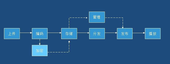 系統(tǒng)完成從視頻上傳到視頻播放的全過(guò)程,如下圖所示: